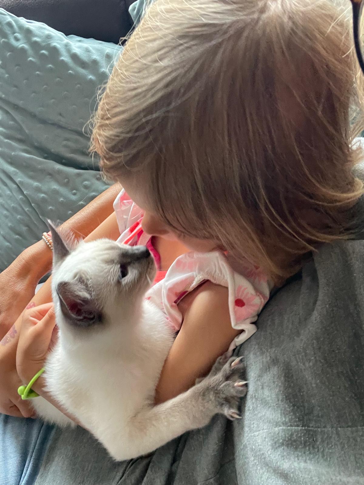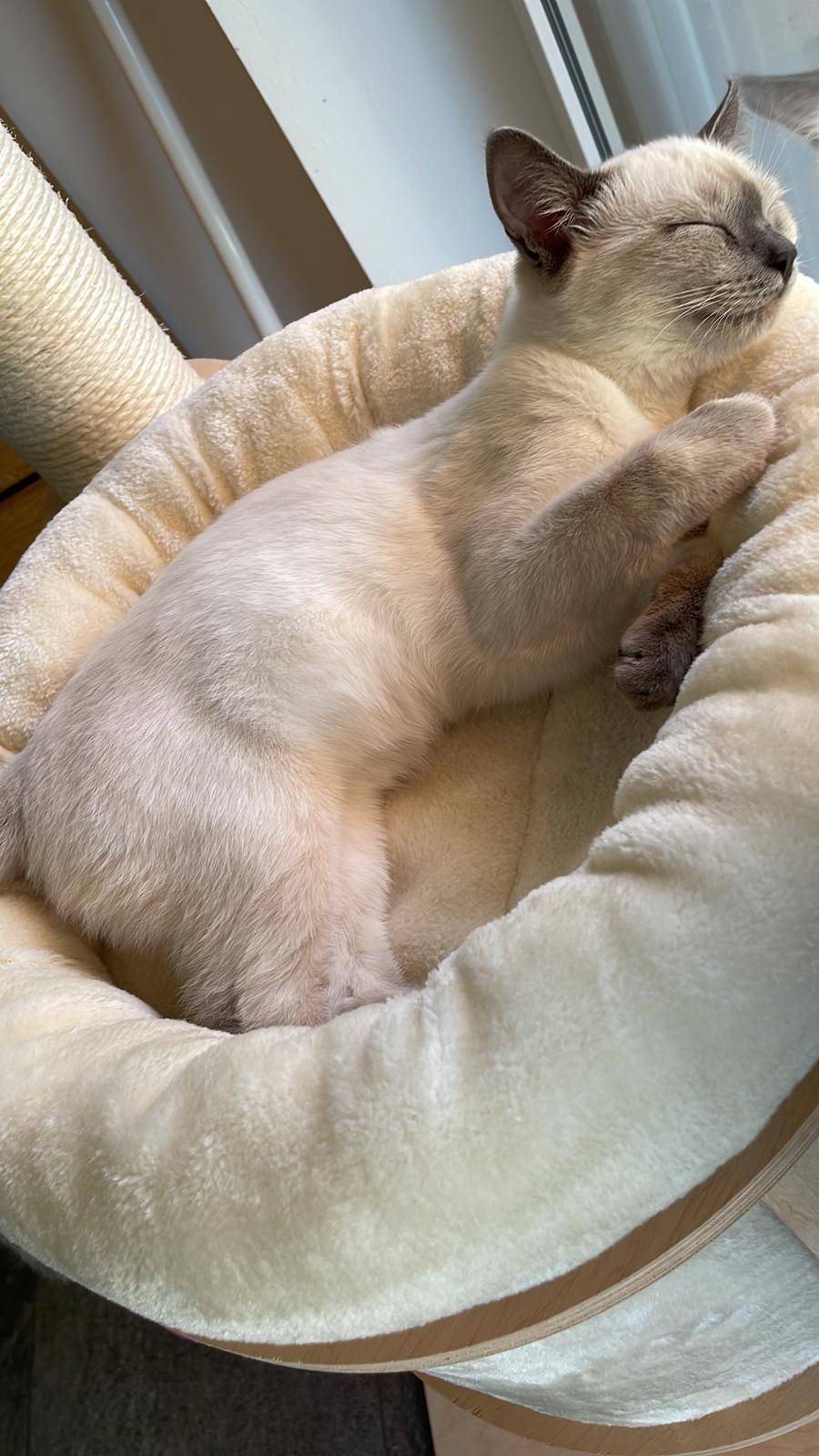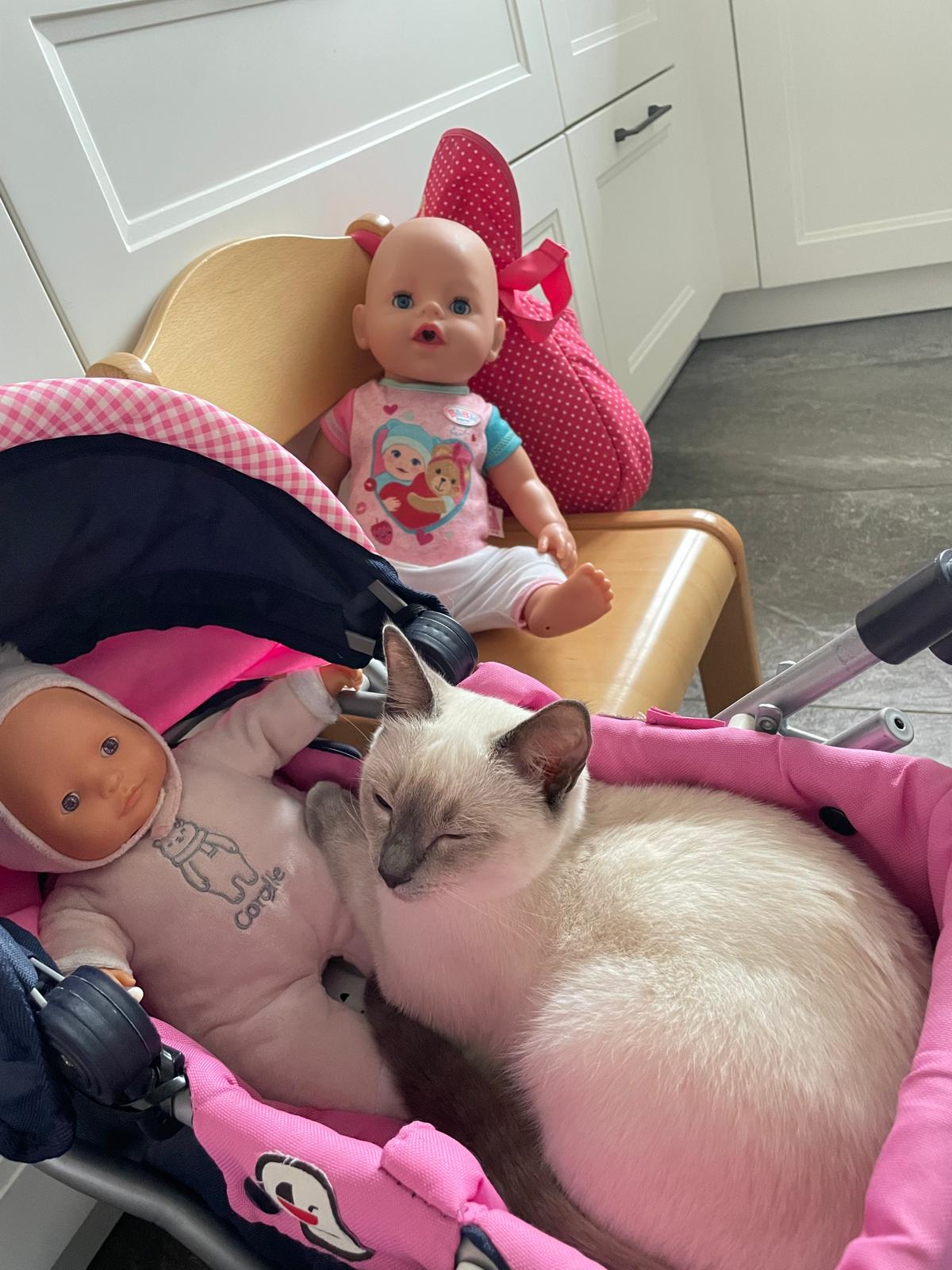 Bereits am 27. Juli 2025 bin ich bei meiner Familie eingezogen und Caroline hätte sie nicht besser für mich aussuchen können. Ich fühle mich in meinem zuhause sooo wohl! Jeanine und Dirk kümmern sich liebevoll darum, dass es mir an nichts fehlt – sowohl an Kuscheleinheiten als auch in meinen dollen 5 Minuten, die ich ehrlicherweise auch mehrfach am Tag habe. Aber die kleine Ella (fast 4 Jahre alt) und ich sind die allerbesten Freunde geworden. Wir knuddeln und spielen zusammen, machen Ausflüge durchs Haus im Puppenwagen und abends darf ich in Ihrem Bett schlafen. Den Garten habe ich auch schon erkundet und es gibt so viele spannende Sachen zu entdecken. Abends kuschel ich gerne auf der Couch und ich genieße es einfach immer und überall dabei zu sein. Meine Familie ist sehr glücklich darüber, dass Caroline mich für sie ausgesucht hat! Aber meine Katzenmama möchte auch noch was sagen…