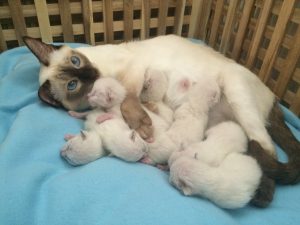 Magic Hopfe Cats Cyra-chocolate point-Katze-mit ihren 4 Tage alten Kitten