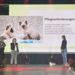 Für einen Rassevortrag waren Carola und Mandy mit Abrax mitunter auch auf der Bühne. Anschließen war unser Stand von noch mehr Menschen umringt. Meine beiden Thaimädchen waren besonders von den höflichen und lieben Kindern beglückt. Wenn wir mal etwas Luft hatten, stärkten wir uns mit sehr leckerem Latte Macchiato oder Käse aus der Messehalle.