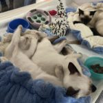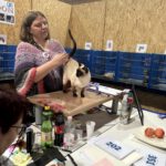 Am Freitag dann bauten wir unseren Stand mit vielen Informationen rund um unsere Thaikatzenzucht auf und gestalteten für die Besucher der Tiermesse einen ansprechenden Stand. Infoflyer, Plakate, Visitenkarten, Fotos, kleine Werbegeschenke und Katzendeko schmückten unsere Ecke. Kräftig unterstützt wurden wir natürlich von unseren Samtpfoten, die sich neben dem Richten gerne dem großen Publikum präsentierten, sich Streicheleinheiten abholten und sogar für die Tageszeitung und das Fernsehen posierten. Wir waren also gut unterwegs an diesem dreitägigen Messe- und Ausstellungswochenende und tingelten zwischen Richtern und Interessierten hin und her. Viele schöne Gespräche mit neuen und alten Züchterfreunden, Ausstellern und Besuchern bereicherten diese Tage.