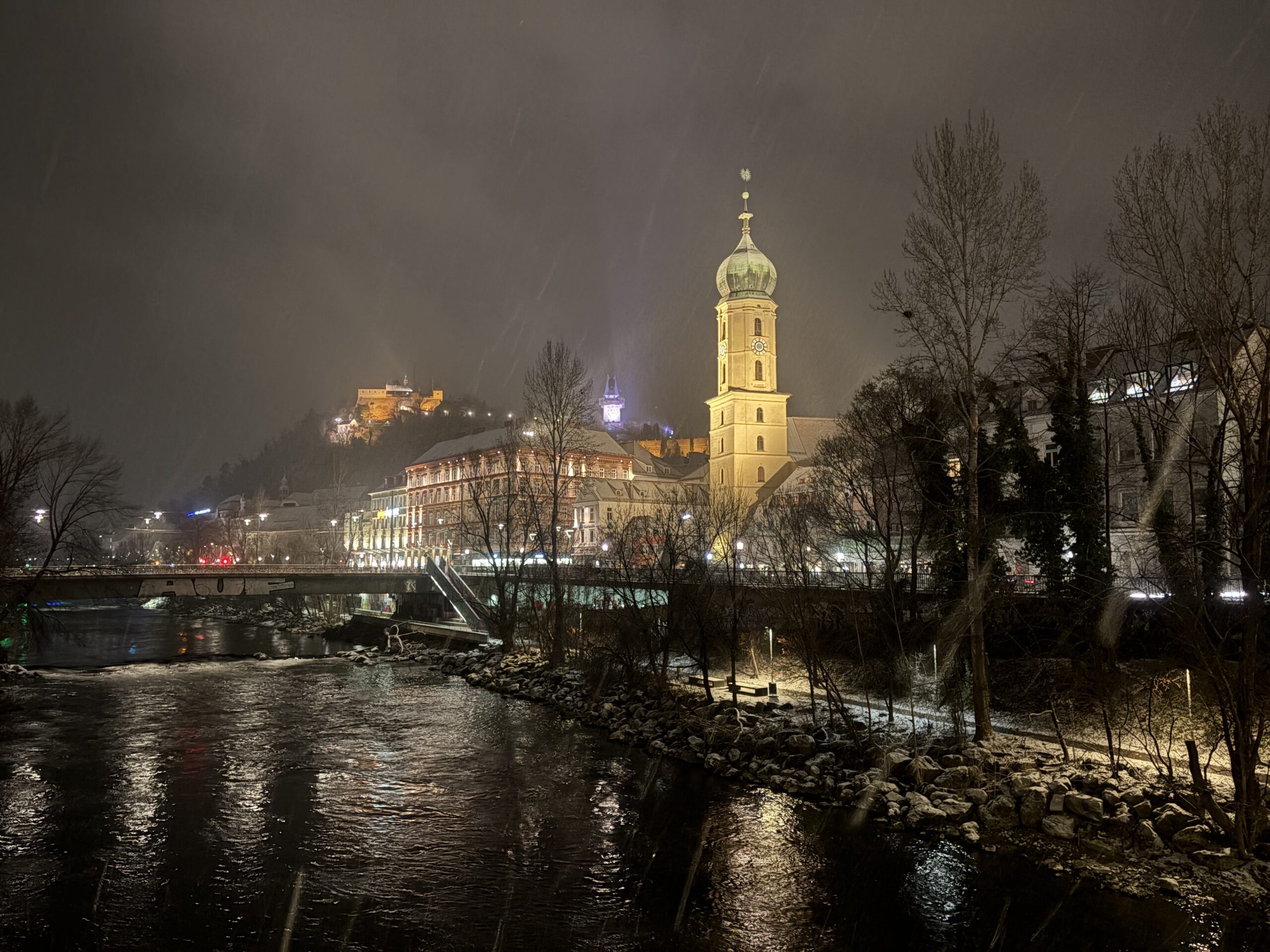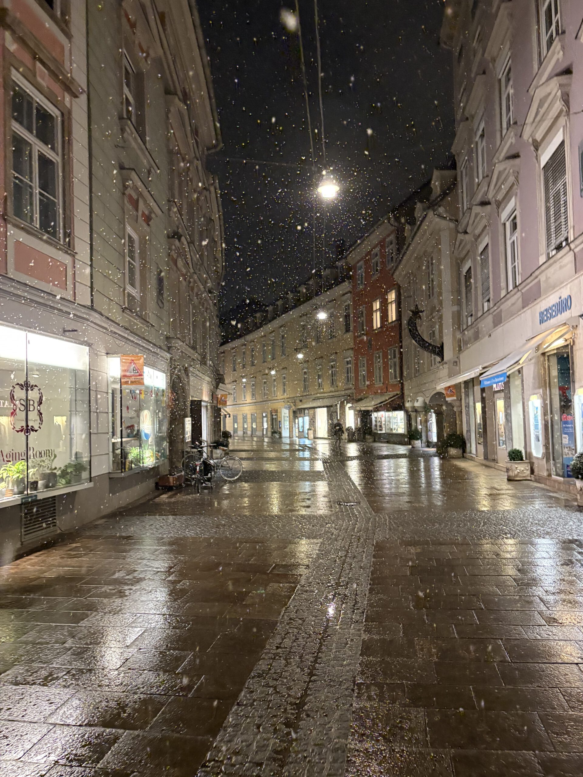 Nun war die Reisegesellschaft komplett und wir konnten ohne weitere Staus bis Graz durchfahren. Aber wer dort schon mal in dunkler Nacht mit einem vollgestopften VW Bus die engen Gassen durchfahren hat, weiß, wie erleichtert wir waren, als wir endlich unsere Wohnung, den Pass-Key und einen passenden Parkplatz in der Nähe finden konnten.