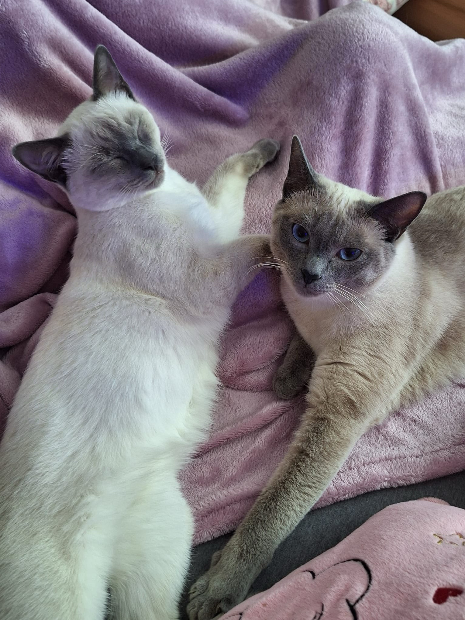 Mich erfreut besonders, dass Wera auch zur Tochter engen Kontakt hat, die besondere Pflege braucht und sich gerne zu ihr legt und setzt. Unsere Thaikatzen können sich einfach gut auf die vielfältigsten Lebensformen und Menschen einlassen und einfühlsam Nähe schenken.